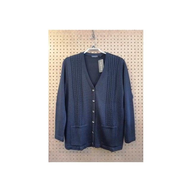 Blauw gebreid vest, met knopen aan de voorzijde en lange mouw