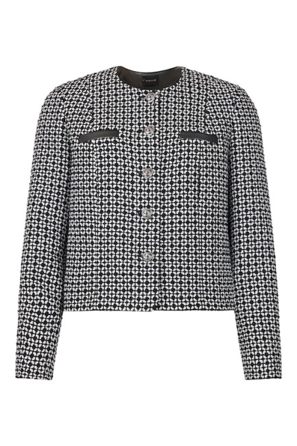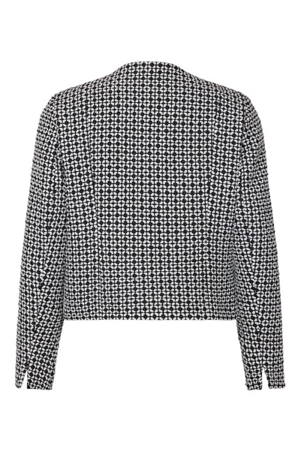 Gewerkt jasje i'cona, zwart/wit, met knopen, met een hele fijne glitter erin verwerkt.