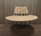Prachtige kitt kleurige hoed met een zwarte opmaak maar mogelijk in ieder gewenste kleur